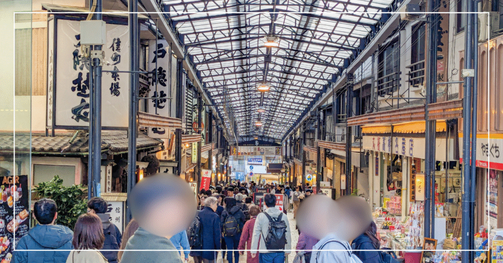 商店街通りは平日にも関わらず観光客で賑わっておりました。