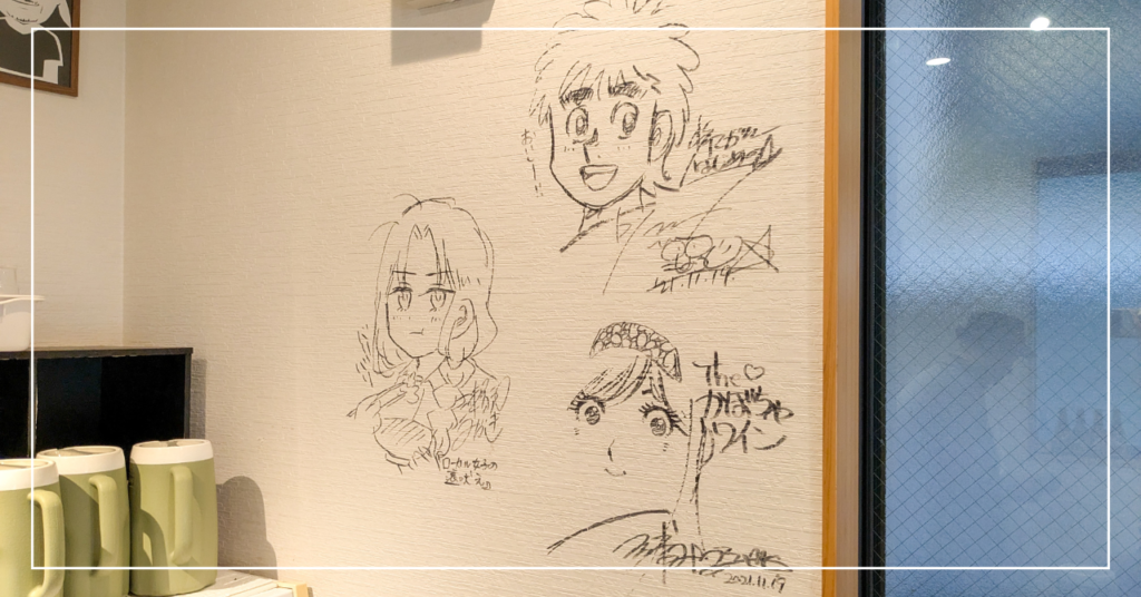 ちなみに支払い時に気づいたのですが、壁には「はじめの一歩」等の有名マンガ家の方のイラスト。これは貴重な機会でした。