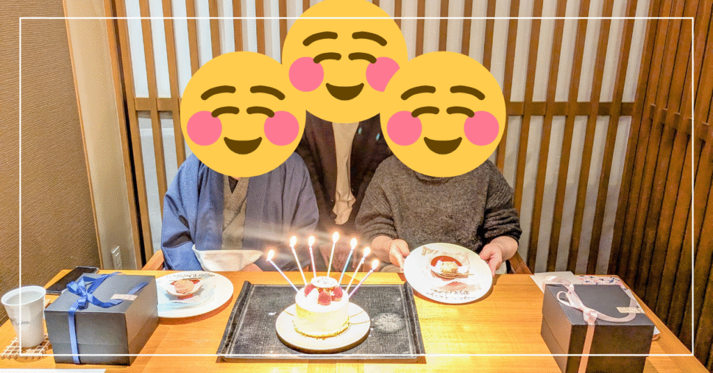 この時は「還暦祝い」であることは伝えず、家族旅行ということで話しました。宿泊ホテルでサプライズすることに。