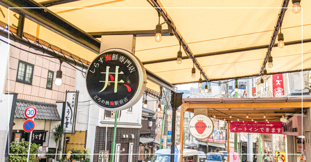 「熱海についたら、しらす丼を食べたい」と両親からの希望があったため、商店街通りを経由して「どろめ 熱海駅前店」へ。