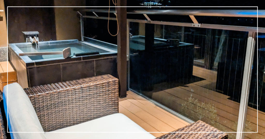 担当者の方に伺うとどの部屋にも露天風呂が常備されているようです。