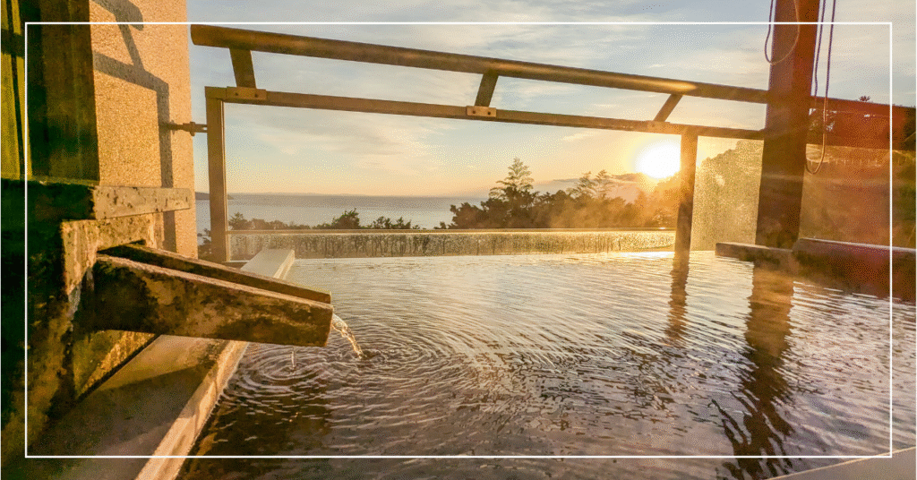 日の出後のオーシャンビューを眺めながら露天風呂に浸りくつろいでいました。非日常的な朝を過ごせて幸せでした。