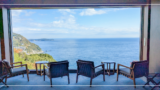 エントランスに入るとすぐに大きな窓にはオーシャンビューの絶景でお出迎えいただきました。そしてチェックインのお手続きの際はウェルカムドリンク(レモネード)を頂きます。
