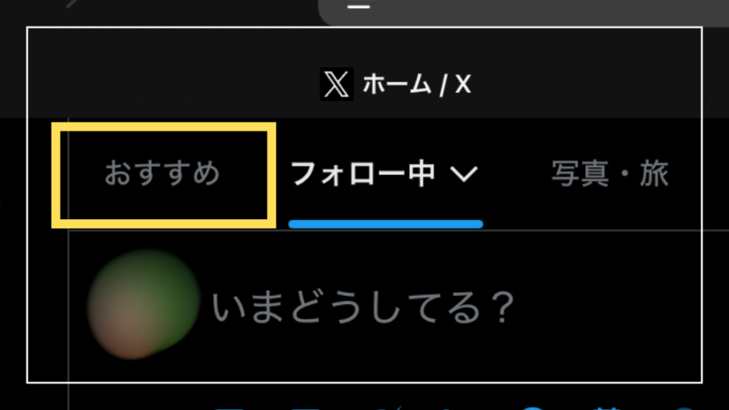 Xのホーム画面において最初が「おすすめポスト」から外すことができた